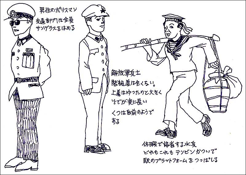 ●当時の中国の制服。服装だけでなく、細かいトコも良く観てます。