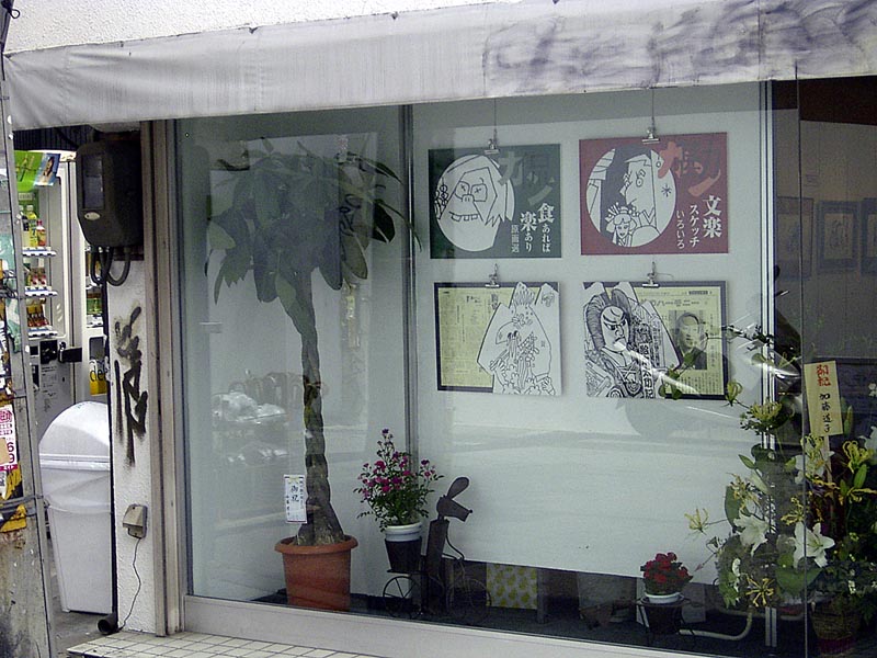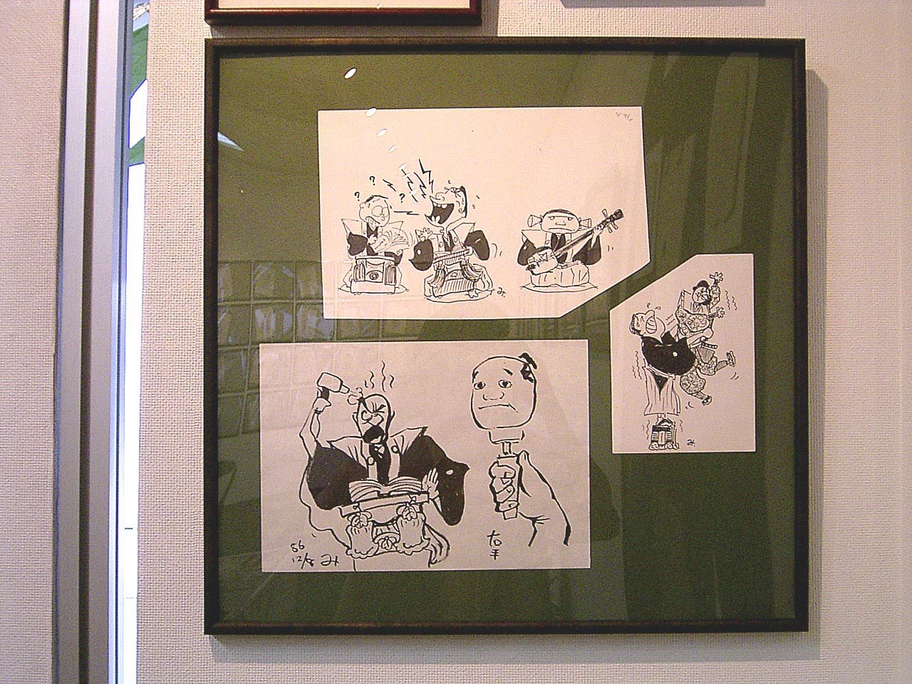 | ●国立劇場の観劇記念スタンプ。全て勘十郎さんが描かれています。ご存じでしたか?その原画です。 | ●数年前に描かれた文楽風刺画(?)ユーモラスなタッチで人気モノでした。 |