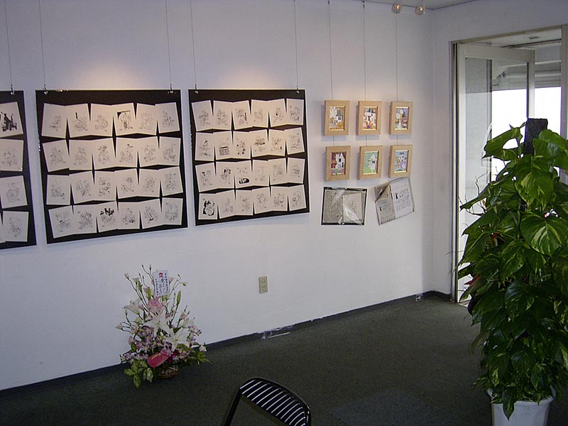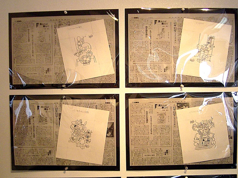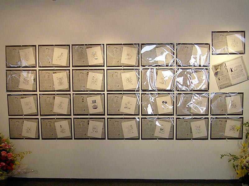 | ●奥の壁には新聞と原画のカップリング展示コーナー。 | ●一部拡大。じっくりと全部読んでおられた方も大勢おられました。 |
