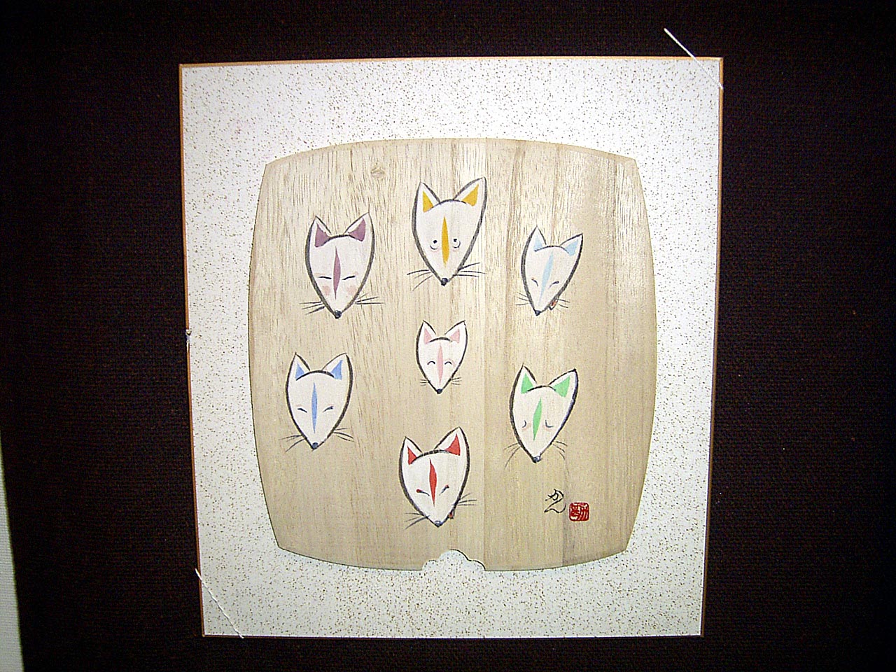 | ●カラー作品。これは扇(扇子)用の原画です。 | ●カラー作品。勘十郎さんは大のキツネ好きです。 |
