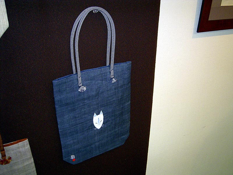| ●“勘十郎オリジナル胴板”三味線の胴板に直接描かれております。 | ●“勘十郎オリジナル麻バッグ”麻布バッグに直接描かれております。追加予約が入る人気グッズとなりました。 |