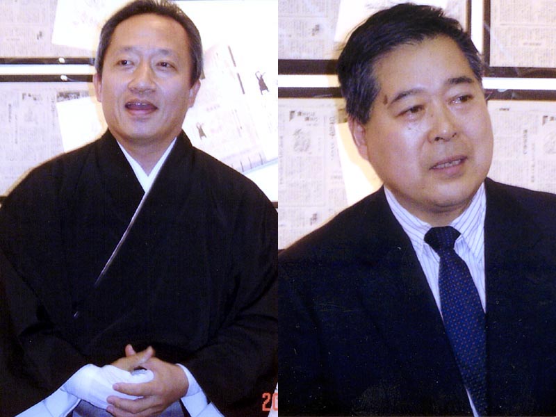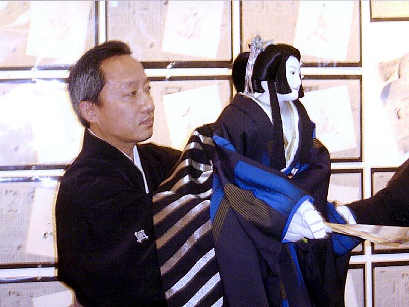 ●オープニングパーティー 初日の夜はオープニングパーティー。150人近い皆さまにお越しいただきました。勘十郎さんは「ホフマンの船唄」をバックにオリジナル人形で舞ってくださいました。又この日は大変なご多忙の中「食(く)あれば楽あり」の著者・小泉武夫さんもおいでくださり、勘十郎さんと供に楽しいお話をしてくださいました。(撮影/Nデザイン・野見康雄氏) |