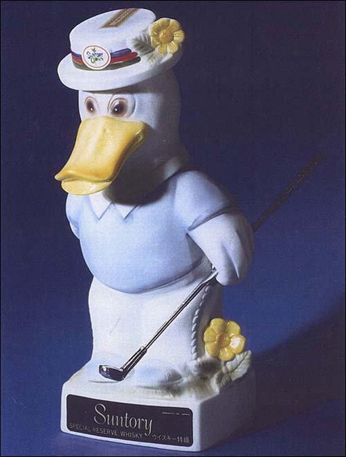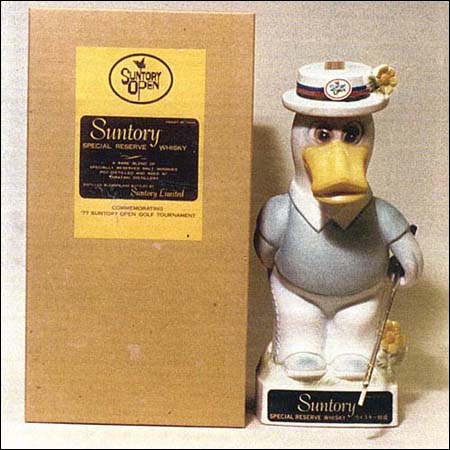 ![]() サントリーオープンゴルフ/ 開催記念ボトル サントリーさんがスポンサーとしてお馴染みの「サントリーオープンゴルフ」。開催記念ボトルを始め、それにまつわる様々なプレミアムグッズが製作されましたが、1977年から1984年まで、侃さんはその主力デザイナーの1人として活躍いたしました。開催記念ウィスキーは、中身がサトリーリザーヴで、ボトルのデザインは毎年「鳥」をモチーフにほどこされました。 1979年は「アヒル」がモチーフでした。 ※現在は販売されておりません。 |