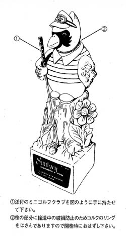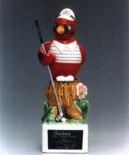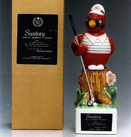 ![]() サントリーオープンゴルフ/ 開催記念ボトル サントリーさんがスポンサーとしてお馴染みの「サントリーオープンゴルフ」。開催記念ボトルを始め、それにまつわる様々なプレミアムグッズが製作されましたが、1977年から1984年まで、侃さんはその主力デザイナーの1人として活躍いたしました。開催記念ウィスキーは、中身がサトリーリザーヴで、ボトルのデザインは毎年「鳥」をモチーフにほどこされました。 1980年は「こまどり(カーディナル)」がモチーフでした。 ※現在は販売されておりません。 |