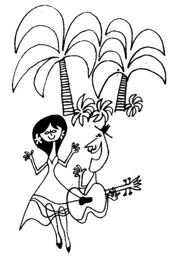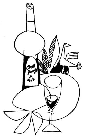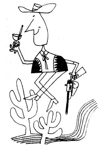 「洋酒とカクテル」に掲載された、挿し絵をご紹介いたします。何ぶん古いもので、原画もいっさい残ってはおりませんので、少々ご覧になりにくいかもしれません。しかし、初期のころのカンさんの特徴である、よりグラフィカルなタッチが存分にお楽しみいただけると思います。
