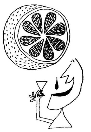 「洋酒とカクテル」に掲載された、挿し絵をご紹介いたします。何ぶん古いもので、原画もいっさい残ってはおりませんので、少々ご覧になりにくいかもしれません。しかし、初期のころのカンさんの特徴である、よりグラフィカルなタッチが存分にお楽しみいただけると思います。