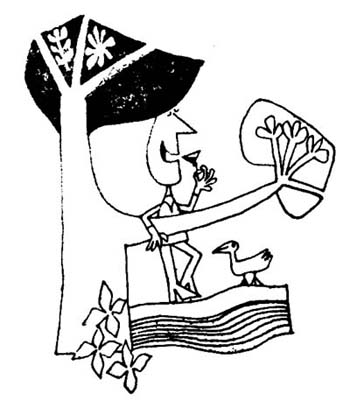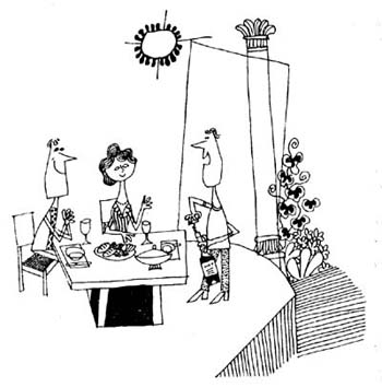 「洋酒とカクテル」に掲載された、挿し絵をご紹介いたします。何ぶん古いもので、原画もいっさい残ってはおりませんので、少々ご覧になりにくいかもしれません。しかし、初期のころのカンさんの特徴である、よりグラフィカルなタッチが存分にお楽しみいただけると思います。