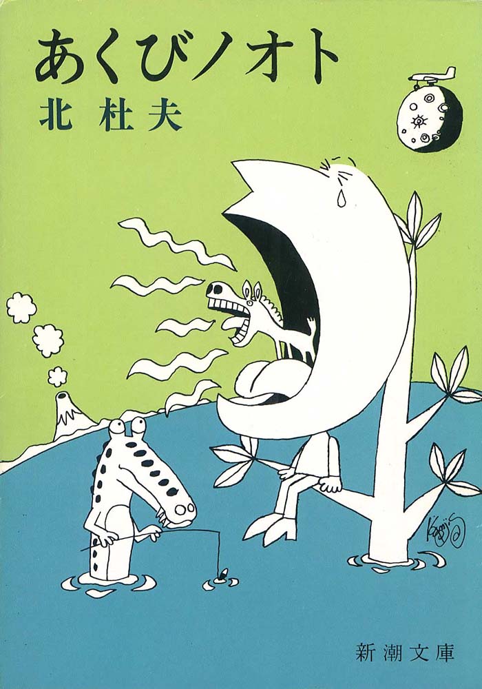あくびノオト ●文庫版 ●新潮文庫 ●1975年初版 夢想の世界に遊ぶ主人公の、現実とのくいちがいに生ずる悲哀をユーモラスに描いて苦い笑いを誘う『第三惑星ホラ株式会社』『少年と狼』『活動写真』等の物語。他に、なまけものやホラ吹きへの共感、沖縄紀行、医学生時代の思い出や精神科医としての体験、子供マンガへの愛着と無理解な大人への抗議、等々、あわただしい現代社会への批評の眼を、爽やかな笑いに包んだエッセイを収める。 ※昭和50年、「あくびノオト」が文庫になりました。表紙絵は新しく描かれました。中の挿し絵はオリジナル版とほぼ同じです。30〜40代の杜夫さんファンの多くは、こちらの「あくびノオト」に親しまれた方が多いのではないでしょうか。 ※新潮文庫さんの広告(PR)文より抜粋させていただきました。 ※出版社名は発刊当時の出版社です。 |