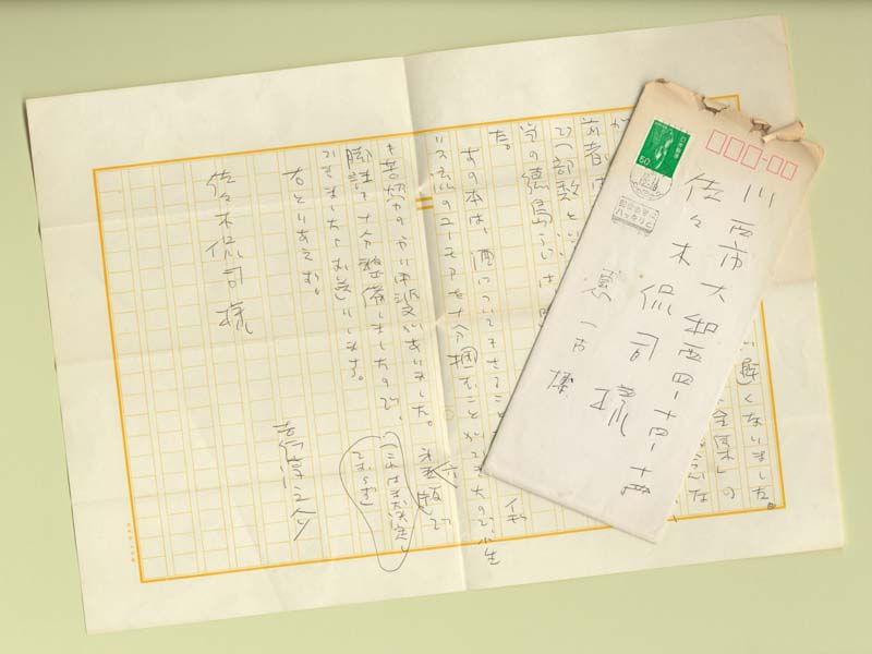 この時期、吉行淳之介さんからカンさんに届いた手紙です。「雑事にまぎれてお礼が遅くなりました。『酒について』と『エンタテイメント全集』の装幀イラストは大へん好評です」という書きはじめで、「酒について」がかなり好評で出版社の担当氏が躁病になってしまったなど、ユーモラスなお手紙でした。